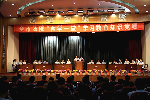 为推进“两学一做”学习教育深入开展,7月11日下午,鹤岗中院举办了“两学一做”知识竞赛活动。共有6支代表队18名干警参加本次竞赛,中院领导班子成员和全市法院100余名干警观看了比赛。