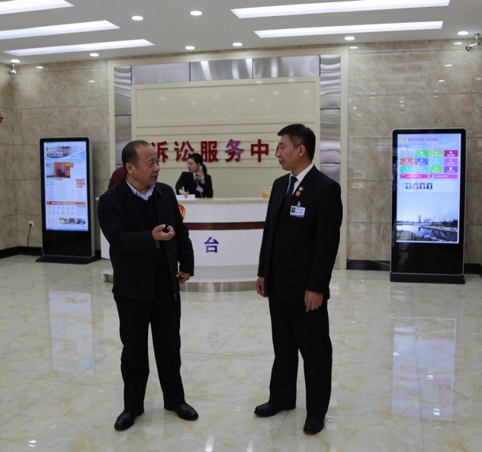督导组先后督导检查了庆安县法院诉讼服务中心、庆安县法院丰收人民法庭、元宝人民法庭、北林区人民法院诉讼服务中心、北林区人民法院宝山人民法庭和中院诉讼服务中心,对绥化两级法院“四零服务”和“首问负责制”等立案接待工作、远程接访和院长接待日等信访接待情况、司法警察安保和装备情况、诉讼服务平台建设情况进行了督导检查。邹鹏副院长等对绥化两级法院窗口建设和四项重要工作落实给予了充分肯定,对存在的一些问题也给予了反馈。