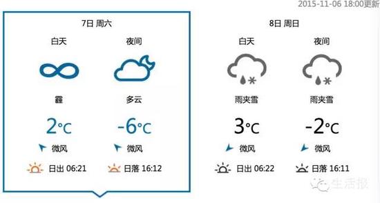 7、8日的最高温度都在2℃,9日降低到1℃,夜间温度为-5℃。雨雪的到来不但有降温,还能清洁空气,赶走烦人的雾霾天。