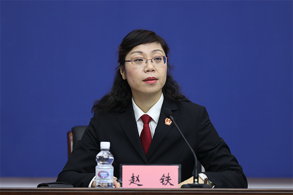 省法院新闻发言人、宣传信息处处长赵铁主持发布会。朱丹钰 摄