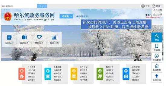 打开哈尔滨政务服务网,清新之风扑面而来以颜色分的“ 办 ”“ 查 ”“ 看 ”“ 评 ”“ 问 ”五大栏目,力争帮您解决所有可能出现的问题