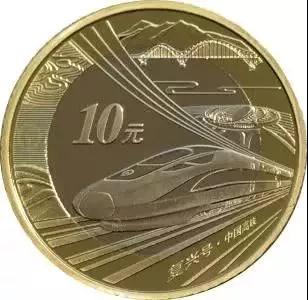 背面图案主景为“复兴号”动车组,背景为大胜关长江大桥、北京南站、“复兴号中国高铁”文字及高山、梯田、沙漠等。主景上方刊有面额“10元”字样。中国高铁普通纪念币直径为27毫米,材质为双金属铜合金,总发行数量为2亿枚,黑龙江省发行数量为840万枚,其中,在哈尔滨市发行数量228万枚。