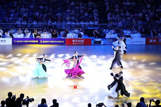 19 日晚,“ 华艺杯 ” 第十四届中国 · 哈尔滨国际体育舞蹈(国际标准舞)公开赛在哈尔滨国际会展中心体育馆开幕。比赛为期 3 天,共 9 场 459 个项目。