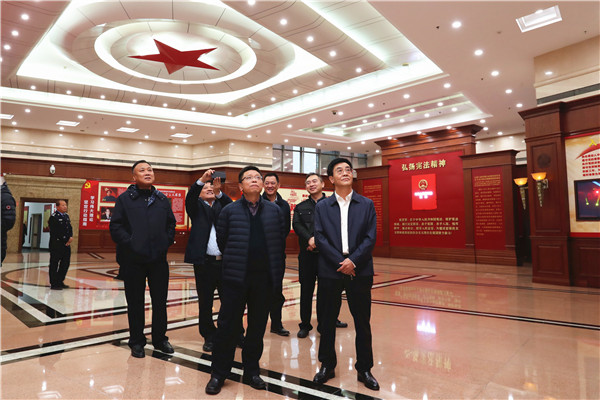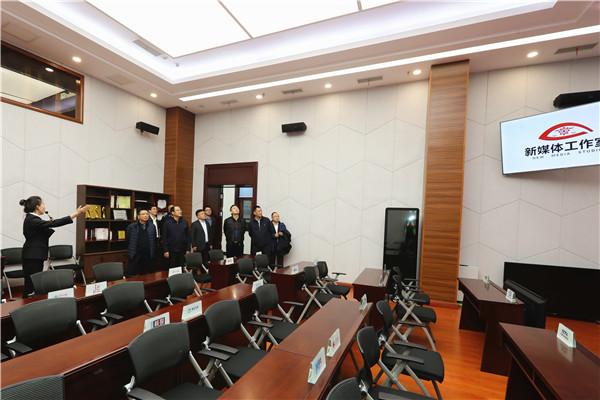 走进新闻发布厅,李万明一行在得知省法院官方微博粉丝人数达到209万,微信公众号和抖音有较强影响力时,对法院的新媒体工作啧啧称赞。
