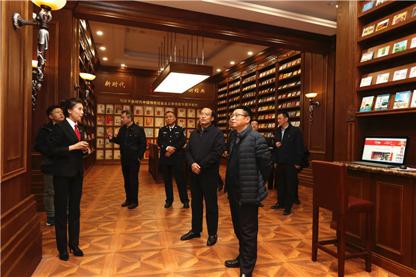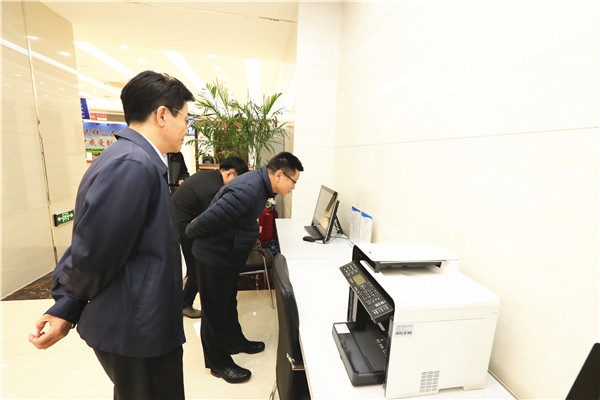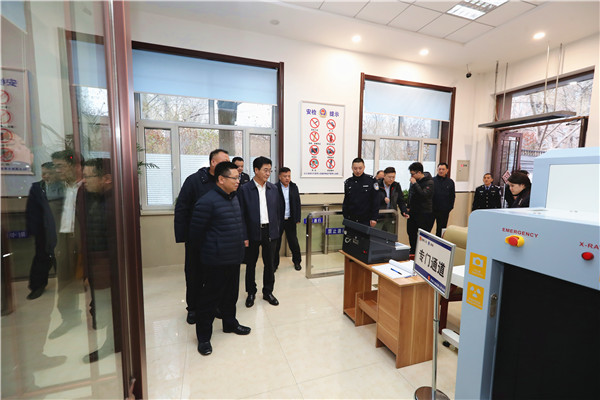 李万明一行来到安检大厅,现场体验了高院司法警察安全检查操作流程工作,对高院安检工作给予了高度评价:操作规范、注意力集中,严格、细致、到位。还与高院司法警察就安检工作进行了指导和交流。