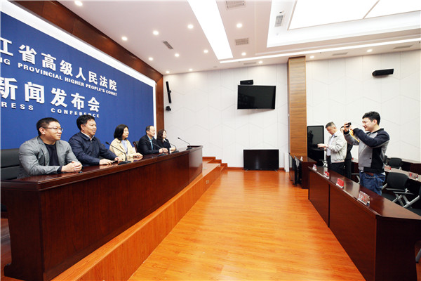 在新闻发布厅,讲解员向大家介绍了高院的新闻发布例会制度和官方微博、微信、抖音、快手等新媒体平台工作情况。大家一致称赞法院新媒体传播了龙江法治正能量。