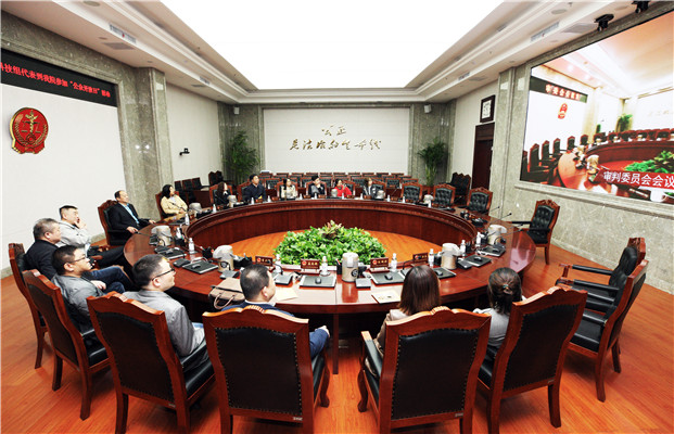 在审委会会议室观看法院宣传片 赵炳松 摄