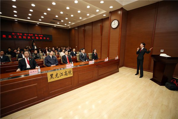 上午9时,参观人员先来到文化大厅,一边听着讲解员的介绍,一边观看着法治建设成就展板、法治文化浮雕,感受着浓郁的法治精神,润物细无声。随后走进了新闻发布厅,这是黑龙江高院致力于推进司法公开的新闻发布平台,“一网双微”新媒体传播方式和员额法官监督平台备受大家关注,看到了全省法院新收案件数量、执行节点监控等数据实时更新,大家纷纷为法官高效率、高质量的业务水平点赞,同时也更加关注着人少案多的困难。坐在执行指挥中心,大家观看了黑龙江高院信息化建设专题片。走进既庄严肃穆又充满现代气息的科技法庭,感受法官公正审判的职责与担当。