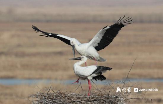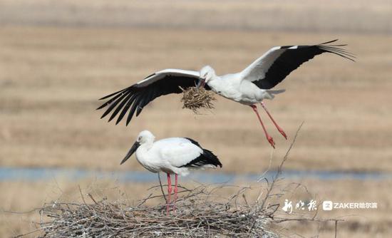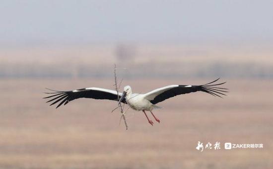 哈市鸟友拍到东方白鹳龙凤湿地筑巢 还能看到丹顶鹤