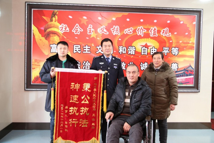 “真的很感谢法院,这面锦旗也不能完全表达我的谢意,真的谢谢!”田某坐在轮椅上激动的说。