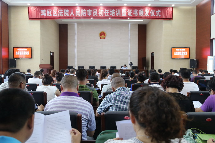 6月29日,鸡冠区法院从通过资格审查的候选人名单中以随机抽选的方式确定人民陪审员人选121人,并已由区人大常委会正式任命。