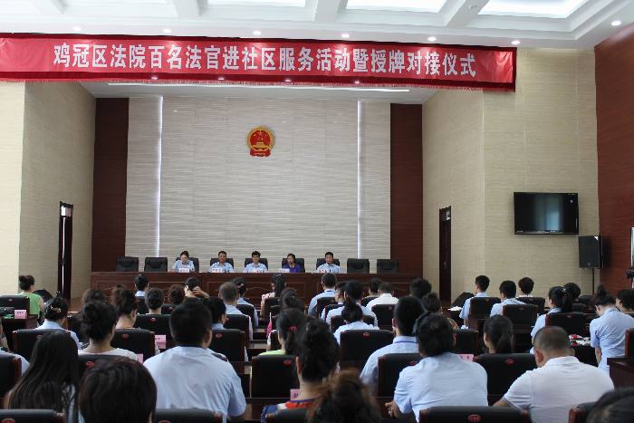 7月11日,鸡冠区法院为深入推进党的群众路线教育实践活动,举行了百名法官进社区服务活动暨授牌对接仪式。