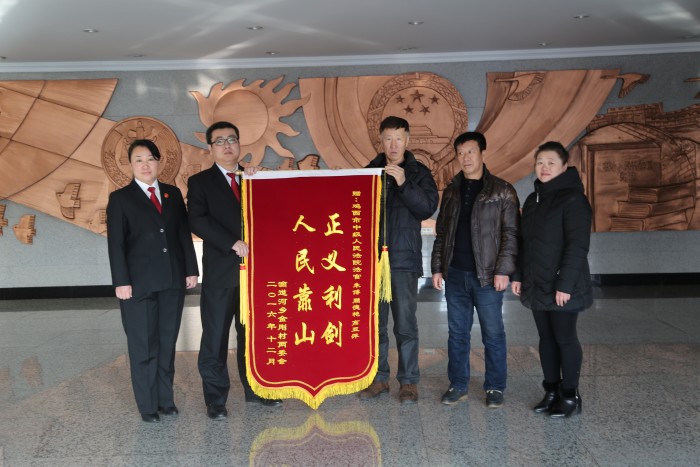 1月9日,鸡西市滴道区滴道河乡金刚村村民委员会为鸡西法院送来一面上书“正义利剑,人民靠山”的大红锦旗,以示对本院公正裁判的认可及勉励。