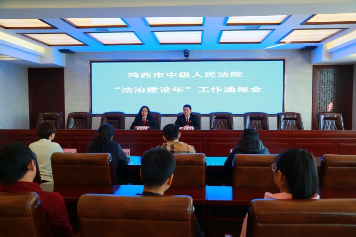 11月21日,鸡西市中级人民法院召开法治建设年工作新闻发布会,政治部主任高国滨就“法治建设年”工作情况进行通报。鸡西市电视台、鸡西市人民广播电台、鸡西日报社参加新闻发布会并进行相关报导。