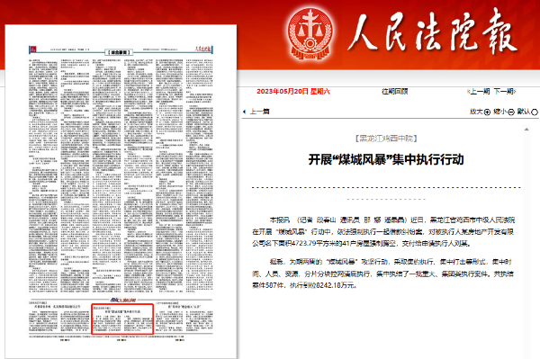 近日,黑龙江省鸡西市中级人民法院在开展“煤城风暴”行动中,依法强制执行一起借款纠纷案,对被执行人某房地产开发有限公司名下面积4723.79平方米的41户房屋强制腾空,交付给申请执行人刘某。
