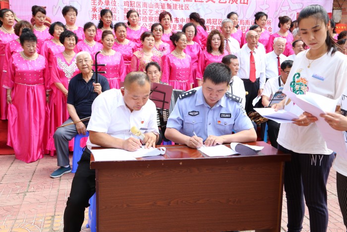 为庆祝中国共产党成立97周年,6月28日,鸡西中院携手新建社区开展庆“七一”主题党日活动。活动期间,双方签订了《法院社区共建协议书》,并观看了社区演出。