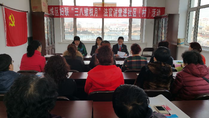 “三八妇女节”来临之际,鸡西市城子河区人民法院与区妇联联合深入城子河区新兴村开展普法宣传进农村知识讲座活动,抽调具有多年民事审判工作经验的女法官为村民们讲授有关妇女儿童权益保护、婚姻家庭、农村土地权益保护等方面的知识。