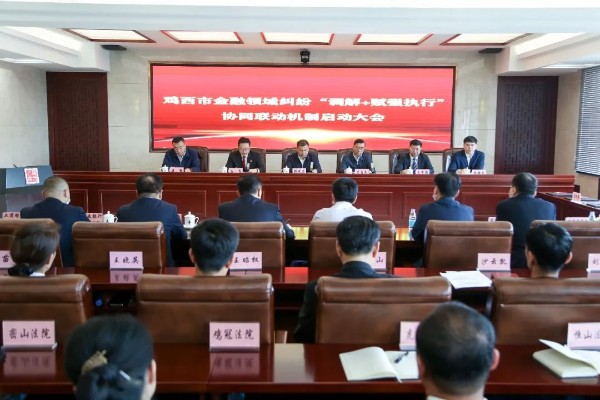 为全面推进金融纠纷多元化解机制建设,创新金融纠纷非诉解决机制,助推我市营商环境持续优化,6月7日,鸡西市金融领域纠纷“调解+赋强执行”协同联动机制启动会议在鸡西中院召开。鸡西市委常委、副市长张发荣,市委常委、政法委书记高启民出席会议并讲话。市中级人民法院党组书记、院长孙勇主持会议并致词。