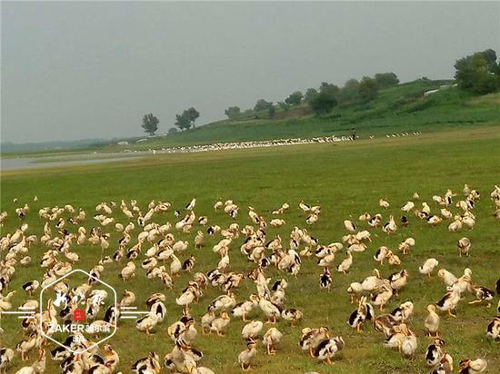 ↑ 抖音评论截图王宝军告诉记者,他养的鸭子是花边蛋鸭,属于南方鸭种,去年 6 月份购置的 500 只雏鸭,今年还不满一岁,它们能够外出时,就跟着邻居家 1500 只鸭子大部队去附近的青肯泡南岸觅食,早上 4、5 点钟出门,晚上 5、6 点回家,他和三家邻居站在分叉路口,各自招呼鸭子,“ 过过过 ”“ 鸭鸭鸭 ”…… 经过两三天训练,鸭子们就能准确分辨回家的路。