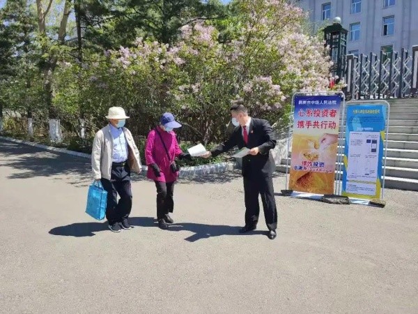 活动中,市中院干警现场开展“5.15全国投资者保护宣传日”《公司法》《证券法》《民法典》等法律宣传,引导广大投资者正确投资。在诉讼服务中心悬挂宣传板,向群众发放宣传单,现场答疑解惑,解读相关法律法规,增进群众对相关法律知识的理解和掌握,规范投资行为。同时,为群众介绍并推广了法院网上立案、跨域立案等多种立案方式,并对已经开通使用的黑龙江移动微法院和电子诉讼服务平台中当事人评价法院案件质效系统进行了讲解说明,引导当事人评价法院、法官的审判质效情况,进一步满足群众的多元化诉讼需求。