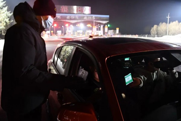 防疫干警对来往车辆进行24小时全面排查,通过扫码,检查行程码,指导注册“健康鹤岗”等方式,全面细致查验流入人员情况,避免新型冠状病毒感染的肺炎疫情传播蔓延。