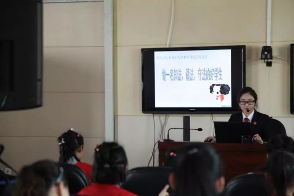 在二楼视频会议室,法官助理刘朦朦为家长和孩子们讲授了《做一名知法、懂法、守法的好学生》一课。课程紧紧围绕小学生为什么要学习法律、应当学习哪些法律、九种不良行为应当如何杜绝、遇到不法侵害应当如果处理等重点内容,作了深入浅出、形象生动的讲解,家长和孩子们边听边记,被精彩的讲解深深吸引。