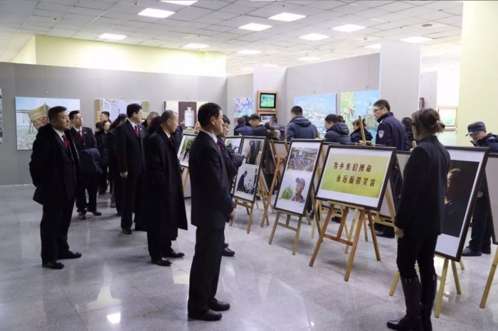 干警们来到三楼展厅,讲解员从为黑河农业现代化发展做出巨大贡献的上海知青杨晓沪,到黑河40年来的改革成果和巨大变化为我们进行一一讲解。展览以摄影图片的形式、艺术的手法,描述了改革开放40年来黑河经济、政治、文化、社会、生态文明的建设成就,全面生动反映黑河市改革开放40年的辉煌历程,生动再现了全市广大人民群众艰苦奋斗、改革创新、创造幸福美好生活的伟大壮举。