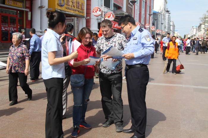 干警为俄罗斯游客讲解法律知识