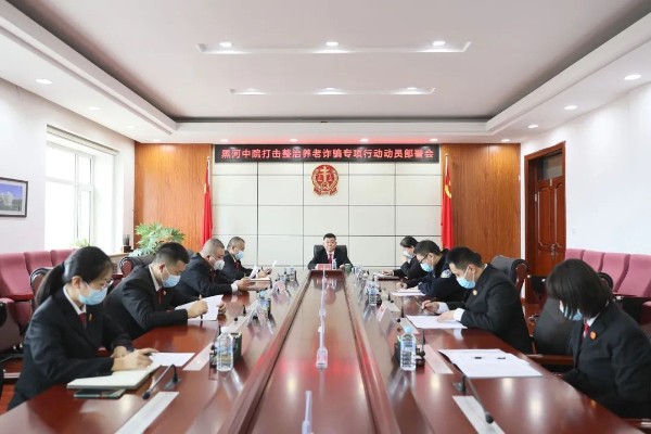 4月27日,黑河中院召开打击整治养老诈骗专项行动动员部署会议,会议传达学习了全国和省、市打击整治养老诈骗专项行动部署会议精神,宣读了《黑河市中级人民法院打击整治养老诈骗专项行动实施方案》。
