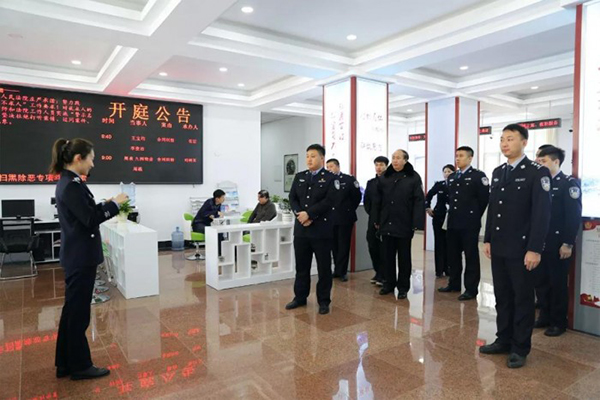 在讲解员的讲解下,一行参观了诉讼服务中心、党建基地、干警绘画作品展厅、执行指挥中心,深入了解法院审判、执行、党建文化等相关工作。随后,双方就“打官司不求人”工作中如何用优质的便民服务让百姓感到温暖与贴心,怎样建设高素质的司法警察队伍为法院审判、执行工作提供更加有效的安全保障等方面进行了交流。