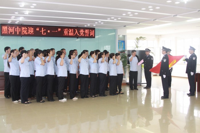 为纪念中国共产党成立95周年,进一步增强党员的党性意识、宗旨意识和为民意识,6月29日,黑河中院党组副书记、副院长邱胜林带领40余名党员法官面向党旗庄严宣誓,用响亮的声音表明永远忠诚于党、公正执法、一心为民,为党的事业奋斗终身的决心。