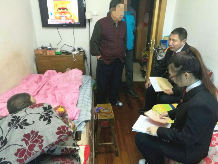黑河市爱辉区法院为行动不便当事人上门开庭