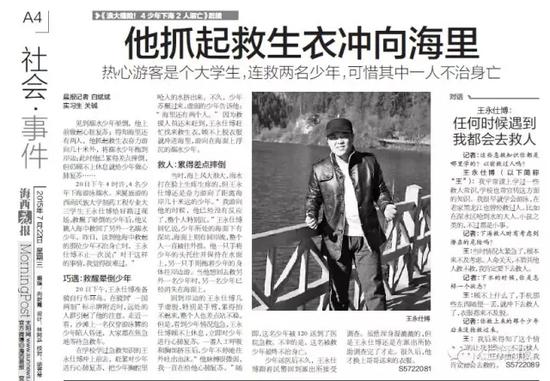 咱黑龙江人热心、乐于助人是出了名的。日前,厦门《海西晨报》以《他抓起救生衣冲向海里》为题,报道了一位热心游客连救两名溺水少年的新闻,而这位“热心游客”王永仕博正是土生土长的黑龙江人。24日,记者电话采访了还在厦门的王永仕博,谈起救人一事,他说:“见死不救,不是东北爷们!”