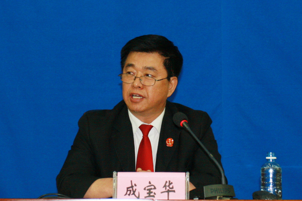 省法院执行局副局长成宝华回答记者提问。朱丹钰 摄