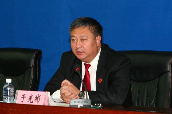 省法院执行指挥中心办公室主任兼执行局综合处处长于光彬回答记者提问。朱丹钰 摄