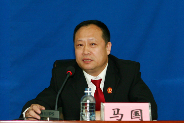 省法院执行二庭庭长马国回答记者提问。朱丹钰 摄