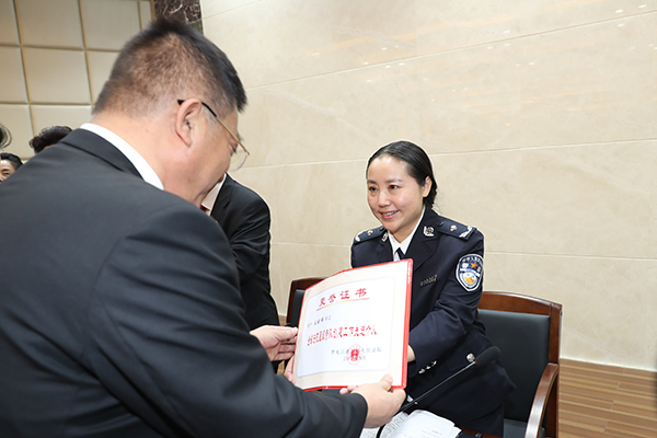 最高法院政治部司法警察管理局副局长冷芳芳为获奖代表颁奖。朱丹钰 摄