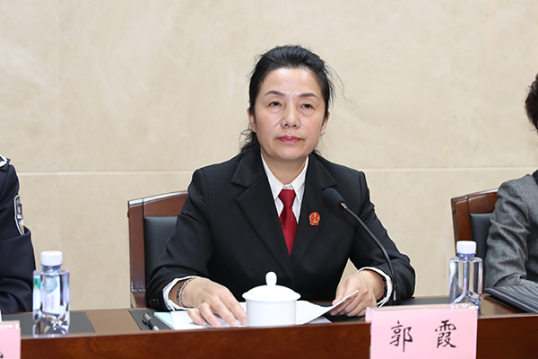 省法院党组成员、政治部主任郭霞宣读“星级警队授牌”通报及先进单位、先进个人记功决定。朱丹钰 摄