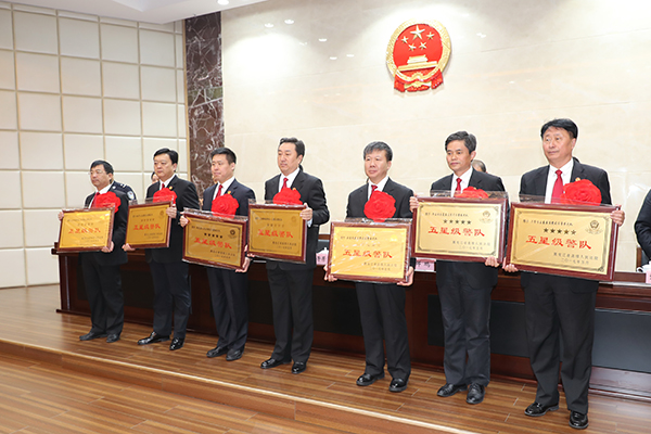 据悉,黑龙江高院于2012年制定了《全省法院司法警察队伍五年基层建设纲要》,坚持“按纲建队”,围绕警队党建、警务保障、教育训练、队伍管理、装备建设“五条主线”,开展了五星、四星、三星级警队创建活动,每年评定一批星级警队,进一步夯实基层基础,提升警务保障能力。在2016年首届全国法院司法警察技能大比武中,黑龙江省司法警察参赛代表团获得了集体总分全国第四名。据了解,此次高院对15个司法警察大队授予“五星级警队”,34个司法警察支队、大队授予“四星级警队”,4个司法警察大队授予“三星级警队”。