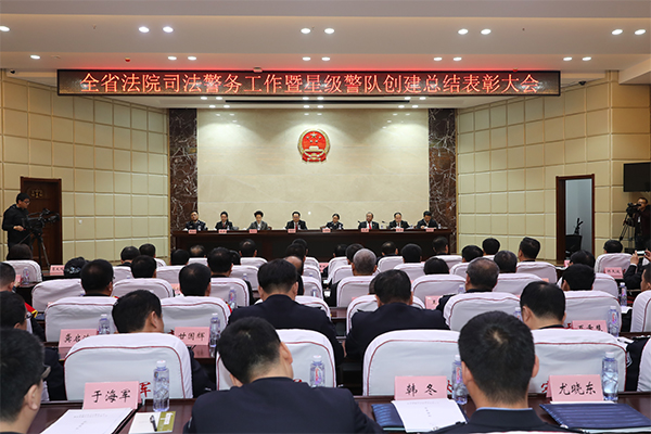 最高法院政治部司法警察管理局副局长冷芳芳,绥化市委副书记谭宇宏出席会议并致辞。省法院党组副书记、常务副院长王树江作总结讲话,党组成员、副院长邹鹏主持会议,党组成员、政治部主任郭霞宣读了“星级警队授牌”通报及先进单位、先进个人记功决定。