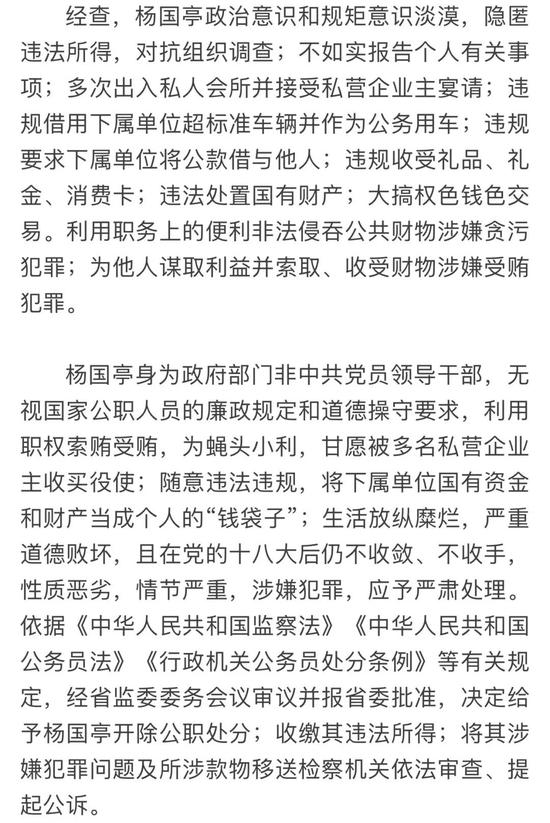 黑龙江省林业厅原厅长杨国亭严重违法被开除公职