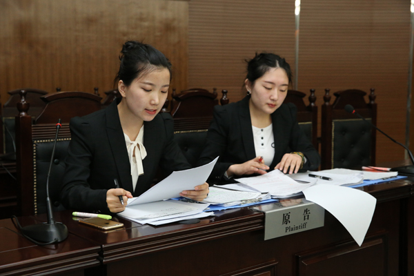 黑龙江大学学生作为当事人的委托代理人参加模拟庭审。朱丹钰 摄