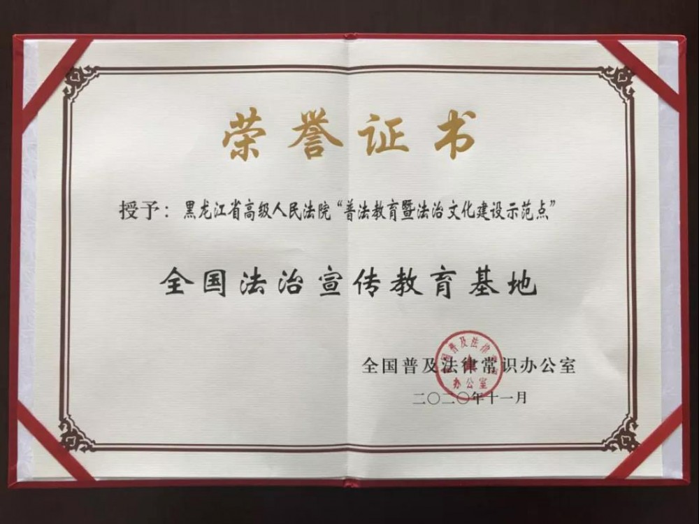 黑龙江高院近日获得“第三批全国法治宣传教育基地”荣誉称号。