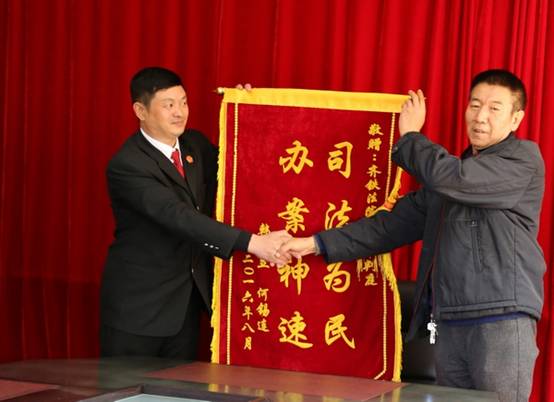 10月10日,韩某将一面“司法为民、办案神速”的锦旗交到了齐齐哈尔铁路运输法院民庭庭长回晶宇的手中,感谢齐齐哈尔铁路运输法院民事审判庭为他挽回经济损失。