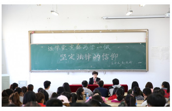 9月28日,齐齐哈尔大学某阶梯大教室内,一名法官面对百余名师生正侃侃而谈——这是齐齐哈尔市龙沙区法院党组成员、政工科长赵双玲应邀为部分在校生进行的一次专题讲座。她以《坚定法律的信仰》为题,结合亲身经历和工作体会,宣讲“两学一做”学习教育的意义、介绍党的十八届四中全会以来全面推进依法治国的成果、分析社会主义核心价值观的作用,引导当代大学生要树立正确的“三观”,对未来的职业做出客观、理性的选择。