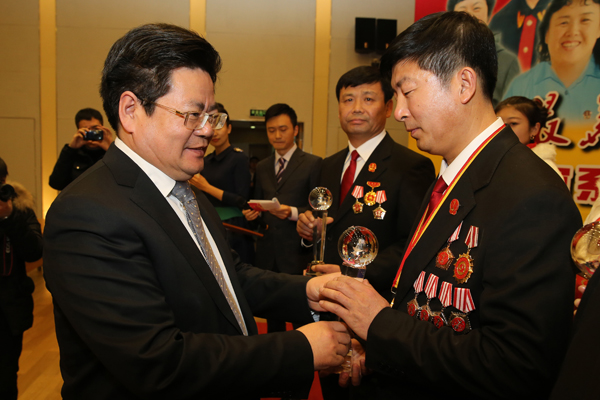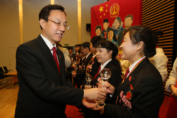 省法院党组书记、院长张述元为“龙江最美法官”荣誉获得者颁奖。朱丹钰 摄