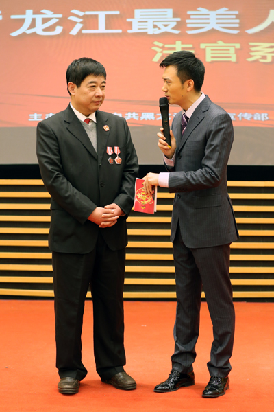 省委常委、宣传部长张效廉为“龙江最美法官”荣誉获得者颁奖。朱丹钰 摄