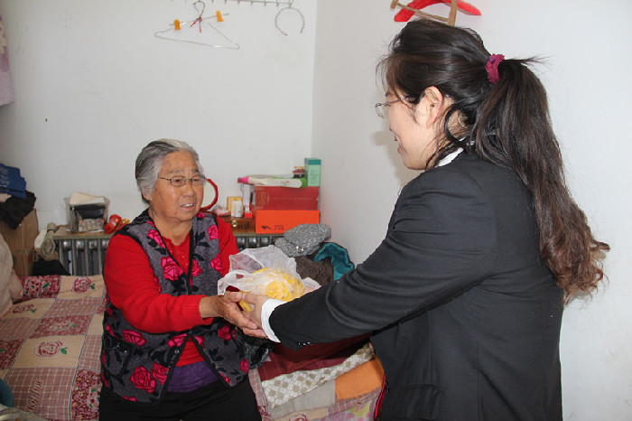 临近2015年的春节之际,利用中午休息时间,窦法官带着老太太去商店买了件价值260元的衣物,并给了老人100元钱。2015年2月17日,腊月二十八,特意买了老人爱吃的猪蹄子、猪耳朵等熟食给老人送去。老人现在特别依赖和信任她,平时有个心结,或者拿不定主意的事都会给她打电话。2015年3月19日,老人给窦法官打电话,说是想她了。窦法官不由地在心里想:下周无论再忙,中午也要抽空看老人去。