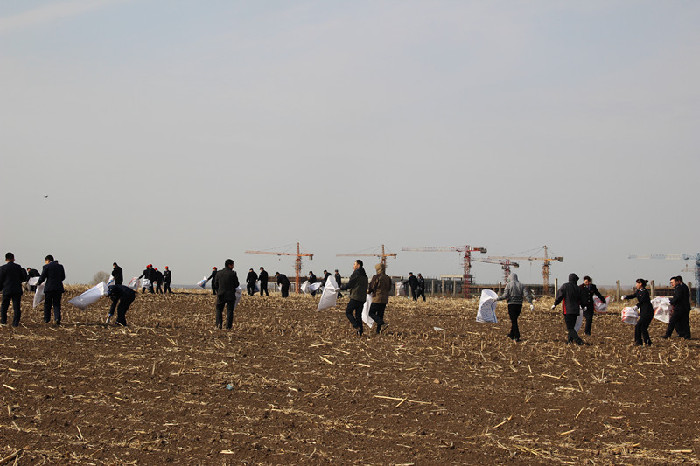 在志愿服务过程中,法官志愿者与全县志愿者们一起,头戴小红帽,手持编织袋,每人五根垄,由北向南顺着垄沟捡拾农地里的塑料袋、废弃物等垃圾,风卷着沙土吹进志愿者们的脖子里,没有阻挡他们前进的脚步,深一脚浅一脚的泥土抹过了鞋袜,没有妨碍他们比拼的热情,不一会编织袋里就填满了半袋子白色垃圾,两旁的农民大叔大妈纷纷为这些自愿者们的爱心助力行为点赞。