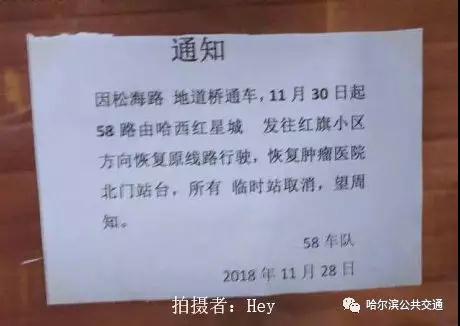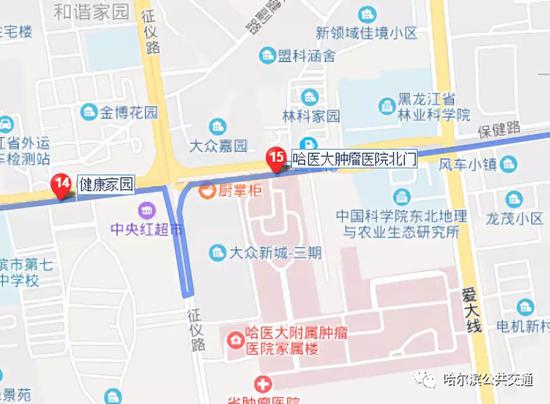 取消临时增设的“大众新城”站、“征仪花园B区”站、“朝阳道口”站、“三合路(绥化路路口)”站、“三合路(宁安路路口)”站、“三合园小区”站,恢复“哈医大肿瘤医院北门”站。